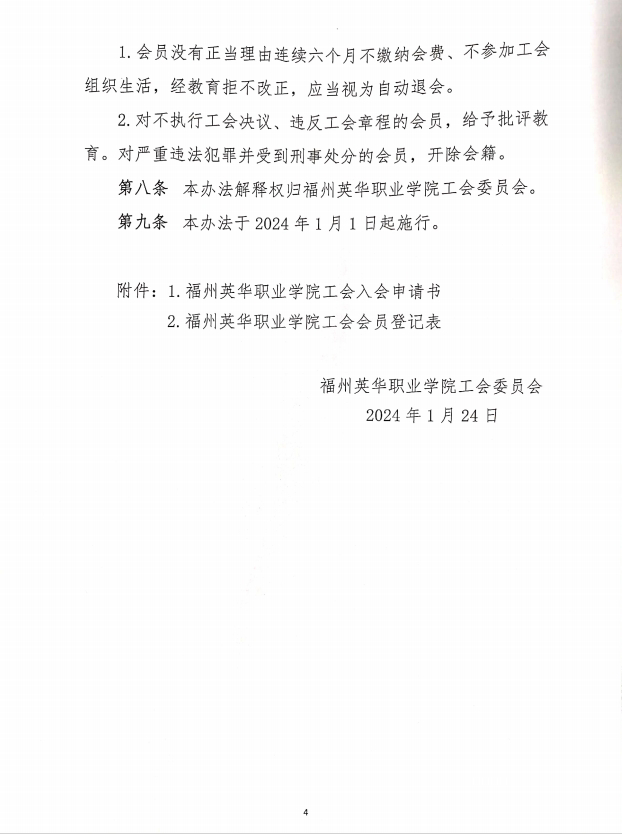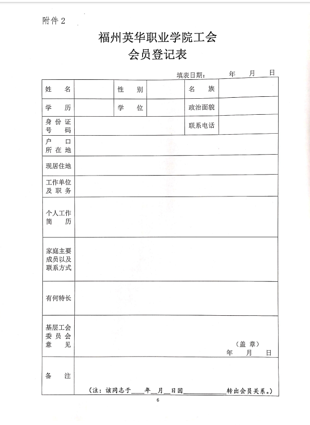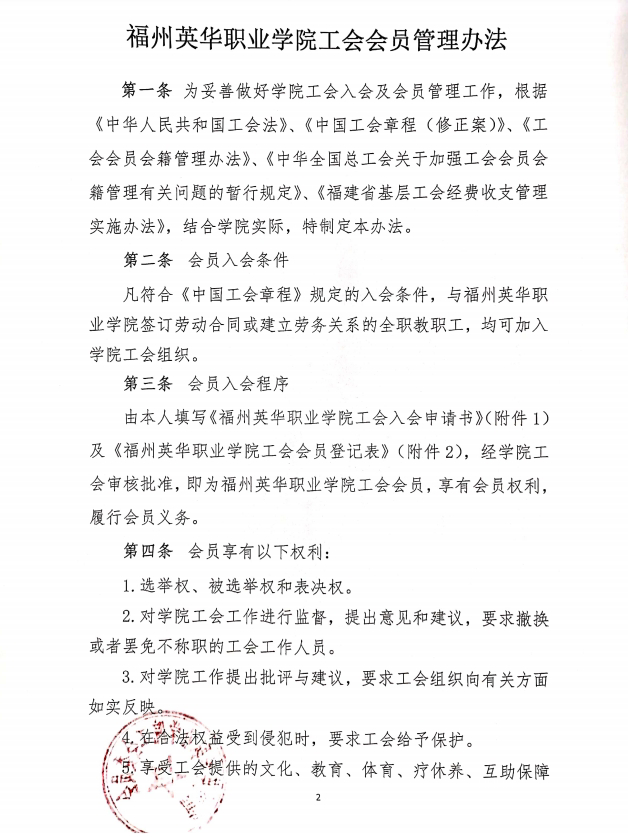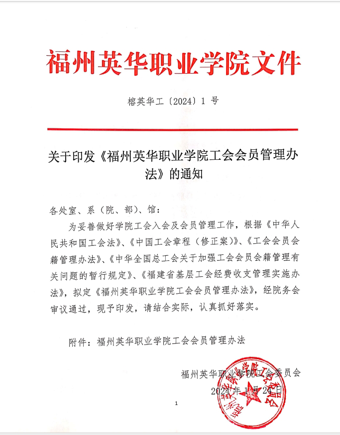关于印发福州英华职业学院工会会员管理办法的通知