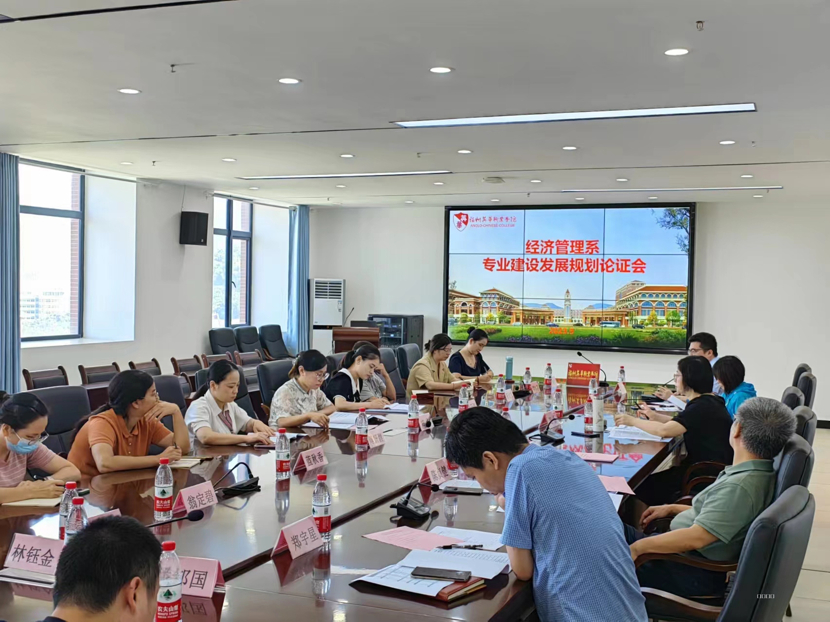 为进一步优化学科专业结构,加强专业建设、提升专业质量,谋划专业发展新篇章,2023年9月21日上午,经济管理系邀请了福建商学院工商管理学院副院长纪孝清、福建信息职业技术学院商贸管理学院副院长江芳及福州职业技术学院商学院副院长邱仁义三位专家参加经济管理系专业发展规划论证会。学院董事长江澜、学院第一副院长陈贞健、学院院长助理教务处处长郑宇星、经济管理系常务副主任郑琳、经济管理系副主任傅妍馥以及各专业带头人和教研室主任及专业老师出席会议。会议由我系常务副主任郑琳主持。