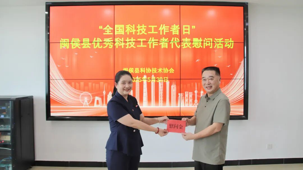 在慰问环节,潘家斌代表县科协向学院优秀科技工作者代表发放了慰问金,并向他们长期以来在科技领域的辛勤付出与卓越贡献致以诚挚的感谢和崇高的敬意。
