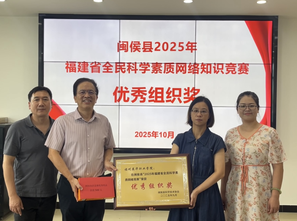 近日,闽侯县科学技术协会主席傅丽敏、副主席赵敏洁一行专程到访我院,为我院颁发“2025年福建省全民科学素质网络竞赛优秀组织奖”,高度肯定我院在赛事组织及科普工作中的突出贡献。