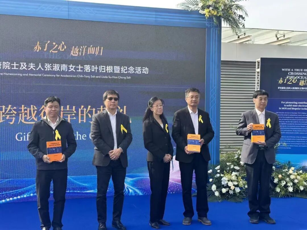 在庄重的仪式环节,萨支唐院士之女萨温伊女士、之子萨立元先生代表家属,向学院赠送了萨院士生前撰写的《固态电子学》一书。这份珍贵的馈赠,不仅承载着深厚的科学智慧,更寄托着对英华后学殷切的传承期许。