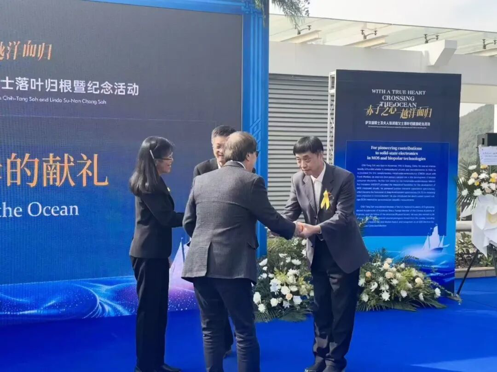 活动现场暖意融融、敬意绵长。黄典焕受邀致辞,围绕“归根与传承”主题,深情追忆了萨支唐院士与英华的深厚渊源。他指出,英华作为孕育了十六位院士的学术沃土,正是萨院士逐梦之路的起点。“尔乃世之光”的校训如明灯,照亮了萨院士追求真理、报效祖国的崇高理想。他远渡重洋,以数十年如一日的执着钻研,成为国际微电子领域的杰出学者,在世界学术殿堂树立起精神的丰碑;其落叶归根的夙愿,更是一份跨越山海的赤诚初心。