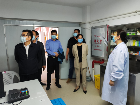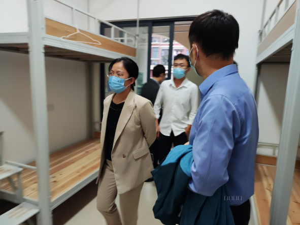陈丽英副厅长一行首先详细查询了校大门管控情况,随后,深入校园,察看了学院食堂、超市、快递站、医务室、隔观室、宿舍、运动场、球场等重点场所,了解封控期的大学生学习生活及心理情况,关心慰问防控一线师生,对学院疫情防控予以充分肯定。同时对学院核酸检测工作、封控期应急保障、隔观室管理及学生关怀等工作提出指导意见。
