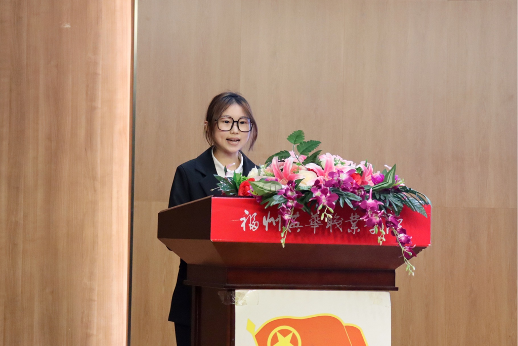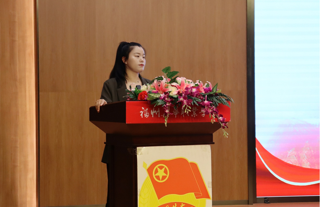 经济管理系团总支书记叶鑫作为教师代表发言,他表示作为一名新时代青年和基层团干部,必须要在政治上始终牢记使命和保持纯粹的初心,坚定理想信念,对人民无限热爱,对青年满腔热忱,与新时代同向同行,在盛世中肩负重任。