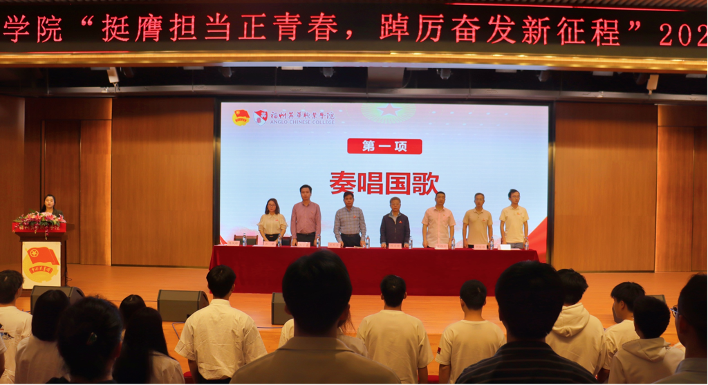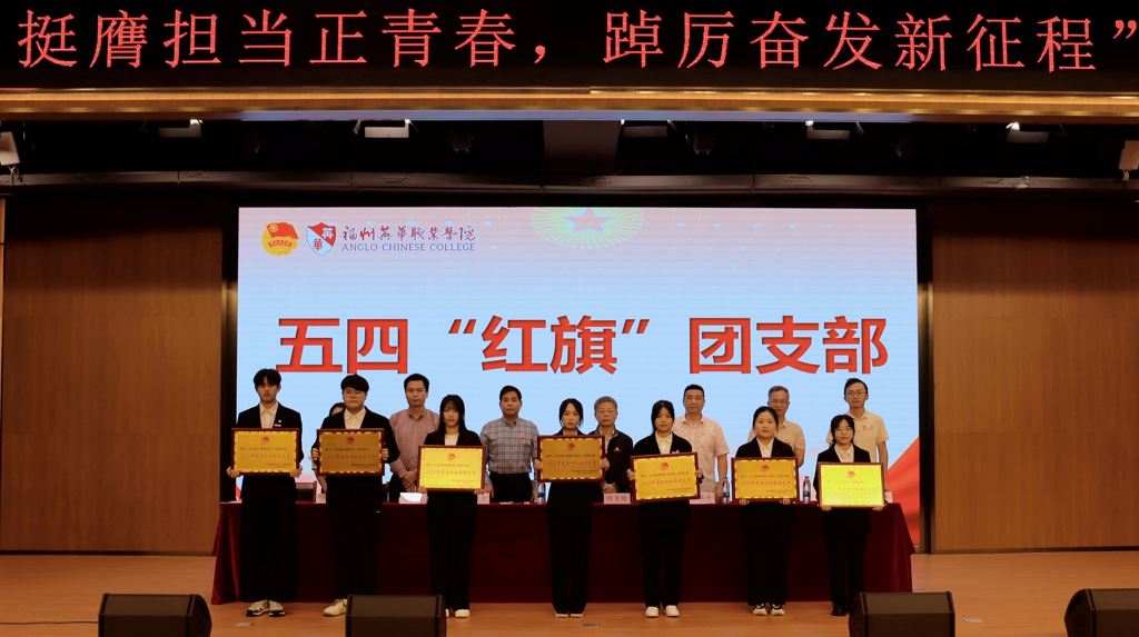 福州英华职业学院于4月24日14:00在穆和图书馆三楼学术报告厅隆重召开2024年“挺膺担当正青春 踔厉奋发新征程”五四表彰大会。学院党委书记兰天金、学院第一副院长陈贞健出席此次表彰大会,学院相关部门负责人、学院师生代表共计500余人参会。大会由学院团委副书记陈凤榕主持。