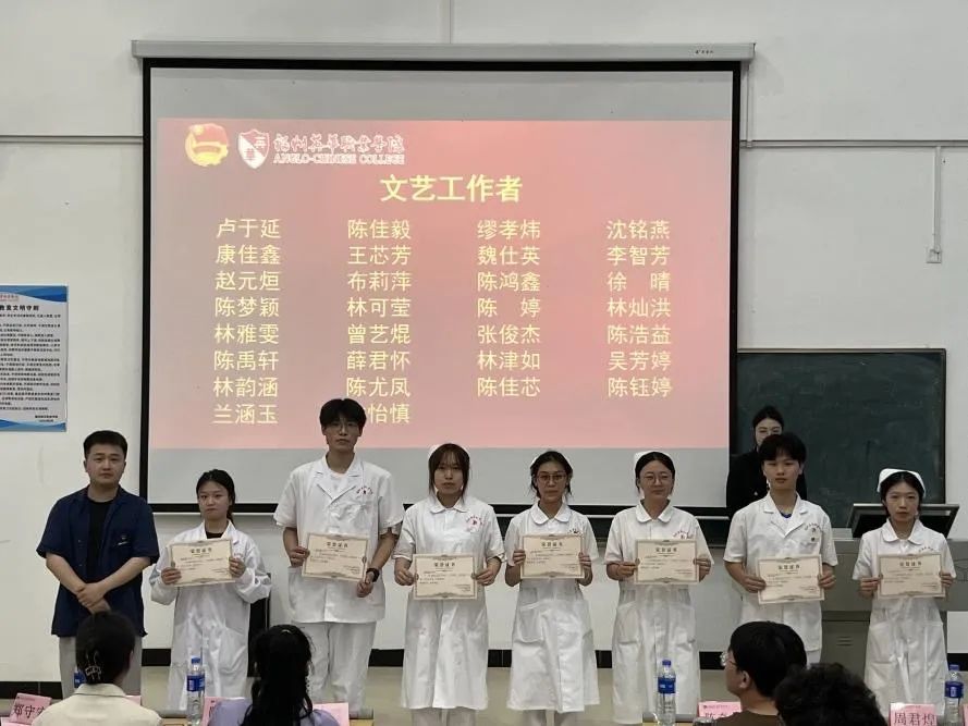 医疗护理系团总支书记周君煌为“文艺工作者”获奖代表颁奖