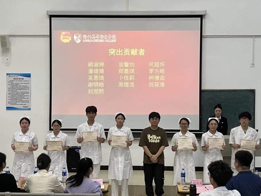 医疗护理系辅导员袁文松为“优秀志愿者”获奖代表颁奖
