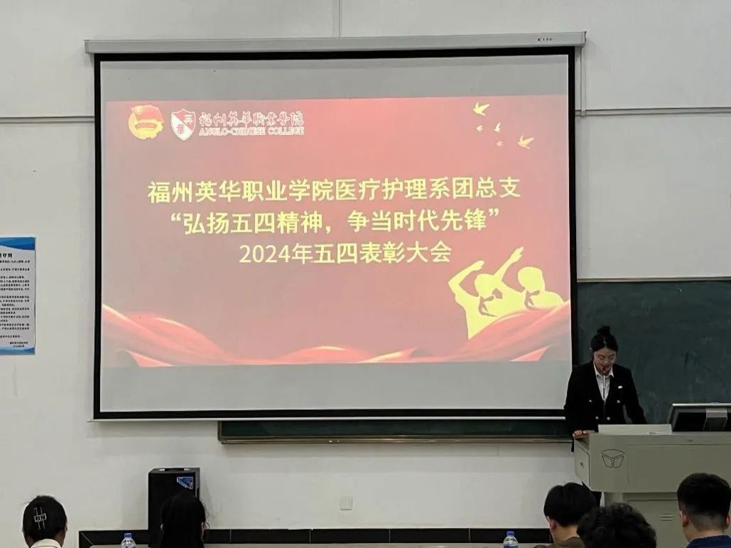 为弘扬五四精神,表彰模范先进典型,展现我系青年昂扬向上的精神风貌。近日,医疗护理系团总支2024年“弘扬五四薪火,争当时代先锋”五四表彰大会在平和楼104举行。学院团委副书记陈凤榕、学院团委陈奇龙、医疗护理系学生党支部书记涂晓文、医疗护理系团总支书记周君煌、医疗护理系全体辅导员及200余名团员青年代表出席本次大会,大会由林晓茗同学担任主持。
