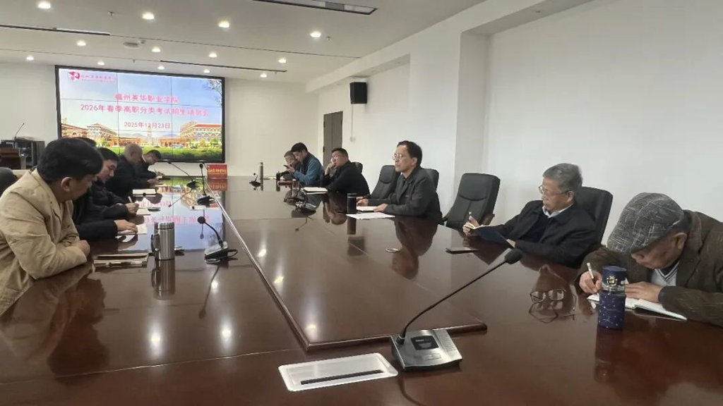 近日,我院在学院804会议室召开2026年春季高职分类考试招生动员会。学院党政领导、招生办公室负责人、各部处室及各系(院、部)负责人齐聚一堂,共同擘画新一年招生蓝图,为2026年春季高职分类考试招生工作吹响冲锋号角!