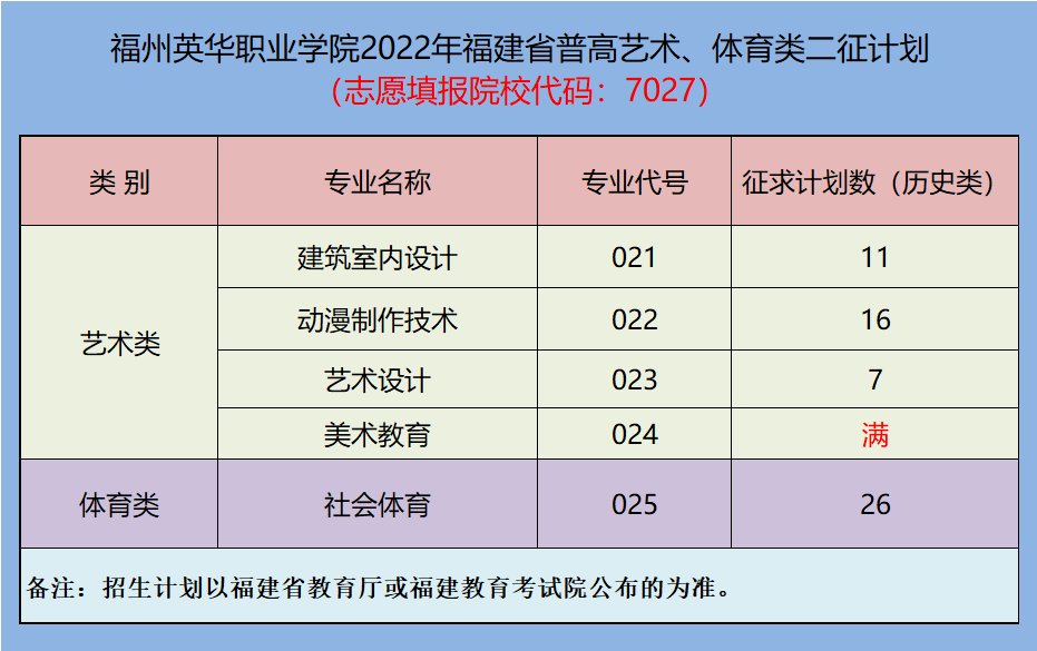 2022年普高艺术、体育类少量征求计划,院校代码7027,机不可失!