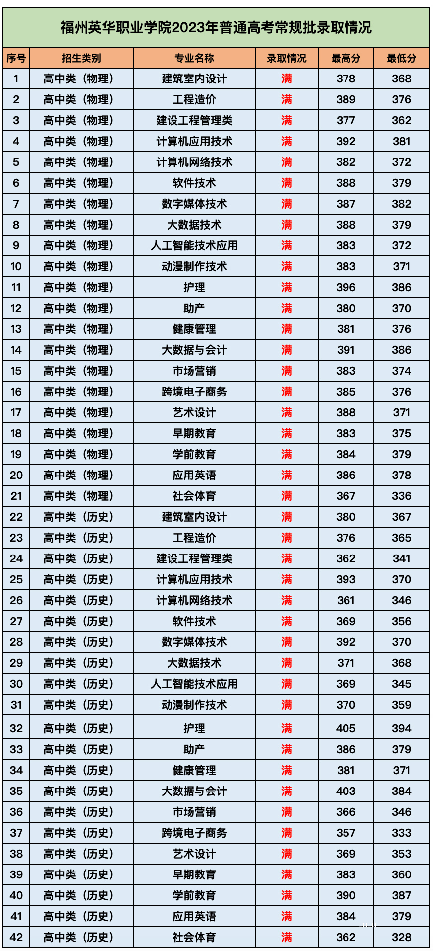喜报|福州英华职业学院2023年普通高考常规批一次录满