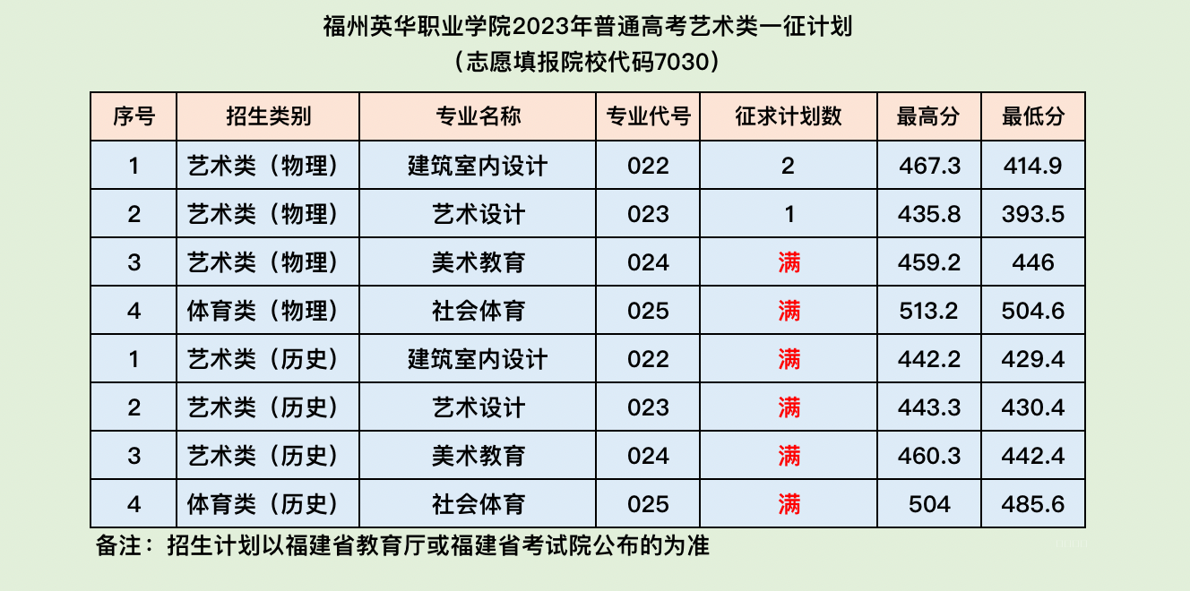 福州英华职业学院2023年福建省普通高考艺术类第二次征求志愿计划公布
