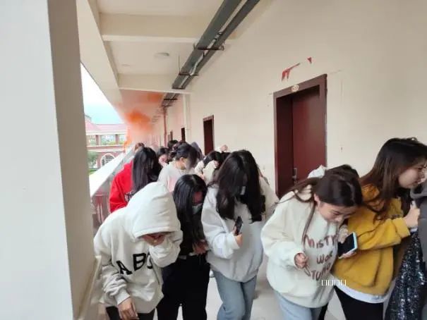 学院安全工作处还联合学工部组织学生进行消防逃生疏散演练。辅导员和保安人员密切配合,在保证安全前提下,以每层楼中间配电房为起点,分别向靠就近楼道有序疏散,所有学生积极参与,认真配合进行消防逃生疏散演练。