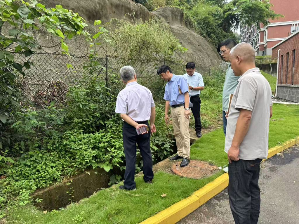 此次检查涵盖学院多个重点区域,包括教学楼、田径场周边护坡建设、校园排水设施以及食堂、宿舍周边环境等。