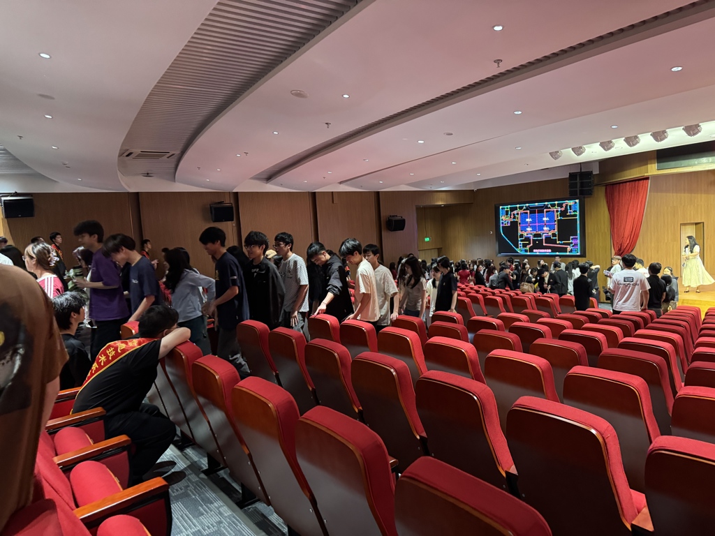 “哔——哔——”,尖锐的警报声骤然响彻学术报告厅,3 秒长鸣、3 秒停顿的循环警报声,打破学术报告厅的平静。演练正式启动,所有在场师生迅速进入应急状态,按照既定疏散方案,俯身沿逃生通道有序撤离。各疏散出口有安全工作处老师和安保人员负责维护通道,通过手势指挥与口令引导,确保疏散路线畅通无阻。师生们步伐紧凑却秩序井然,全程保持安静、高效撤离。从警报响起到全员安全疏散,仅用时5分18秒,充分展现了师生们的应急反应能力与娴熟的逃生技巧。