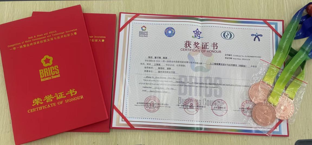 在2024一带一路暨金砖国家技能发展与技术创新大赛 —— 人工智能算法设计与应用赛项中,我院信息技术系学子凭借扎实的专业知识和出色的团队协作,荣获三等奖。本次大赛促进了人工智能领域的创新和发展,推动新技术在现实世界中的应用与推广。