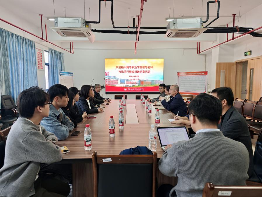 为促进专业建设提升与教学经验共享,近日,我院信息技术系主任吴梨梨、副主任施清梅带领系部相关专业及课程教师,赴福州职业技术学院信息工程学院参观交流。在该校信息工程学院林风人院长及相关专业教师的热情接待下,双方围绕专业课程设置、人才培养模式,信息技术课程模式等话题进行深入交流,并开展了虚拟教研室活动。