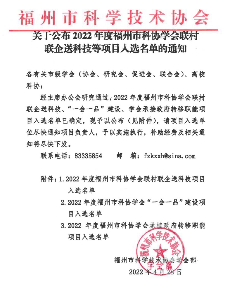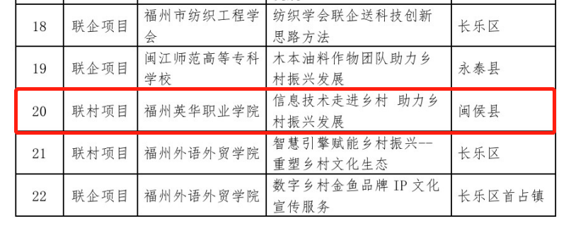 近日,福州市科学技术协会发布了《关于公布2022年度福州市科协学会联村联企送科技等项目入选名单的通知》,我院信息技术系毛忠瑞老师主持申报的联村项目“信息技术走进乡村·助力乡村振兴发展”入选,予以实施执行。