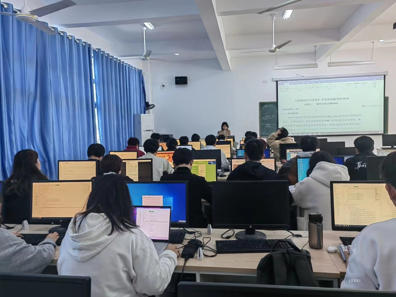 2024年1月8日-1月19日我系2023级(3+2)计算机应用技术专业1班、2班学生在1号楼501教室进行前端设计与开发专项实训,本次实训目的是培养学生熟练运用Hbuilder软件进行网页规划、设计、布局与开发,掌握css网页布局的方法,能够使用div+css进行网页布局,能设计并制作出一个自选主题网站。