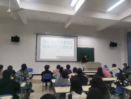 稳定工作,提高同学们寒假离校期间的安全防范意识,全面普及校园安全常识和做好预防疫情的防治工作,确保我系广大师生的身心健康和生命安全。福州英华职业学院信息技术系于1月10日晚19点40分在5401开展了“树牢安全意识,加强疫情防控”寒假离校安全教育,本次出席班会的有辅导员林娜老师、官诗琪老师、刘杰老师及全体2021级信息技术系全体新生。