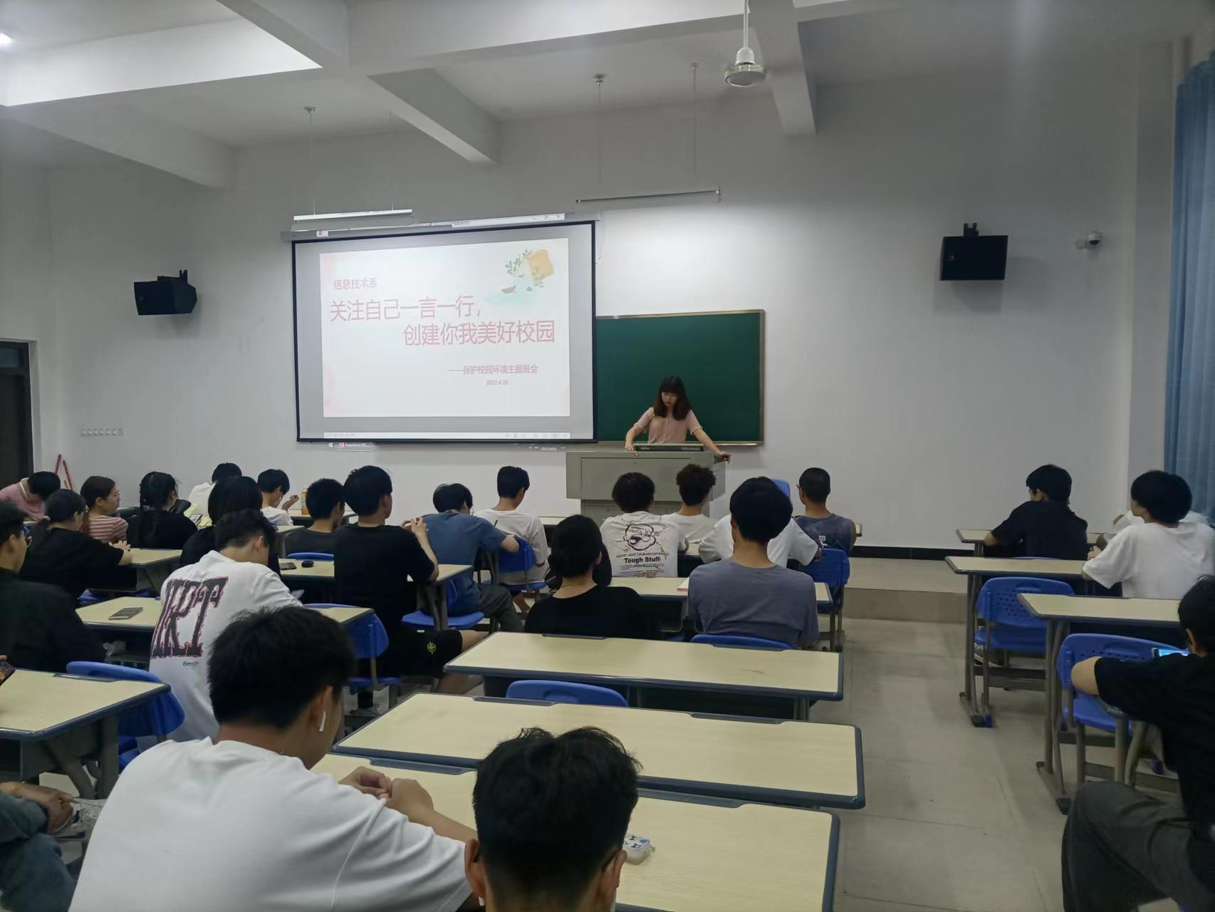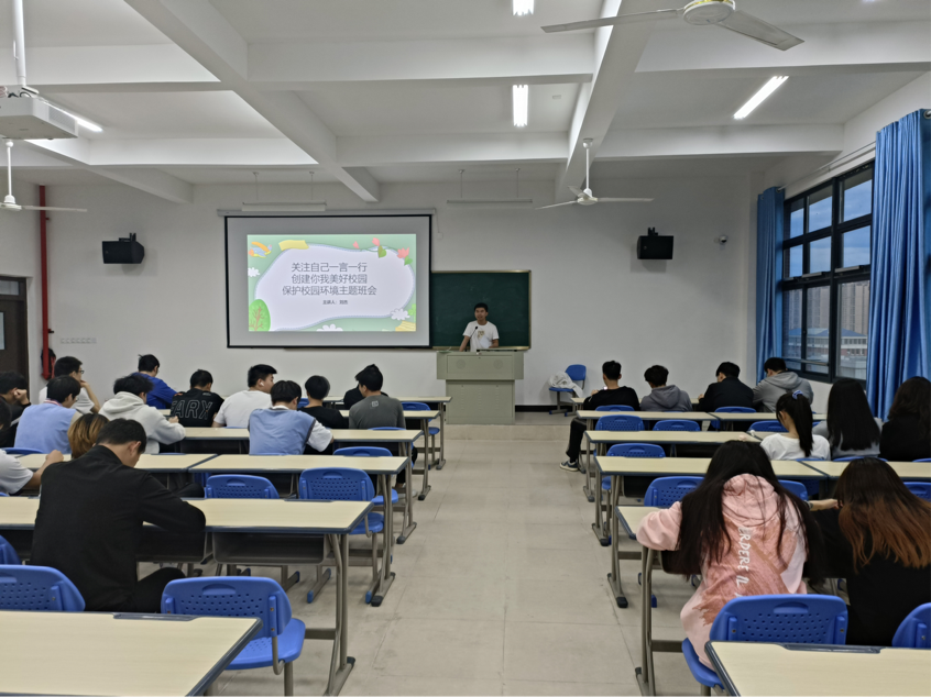 培养学生从自我做起,爱护环境,在生活中能养成环保的习惯,具备环保的意识,养成不乱扔垃圾的行为习惯。我系于2022年5月18日在新教学楼5101开展了“关注自己一言一行,创建你我美好”保护校园环境主题班会,此次主题班会出席人员有辅导员沈嘉煌、林娜、官诗琪、刘杰及全体同学。