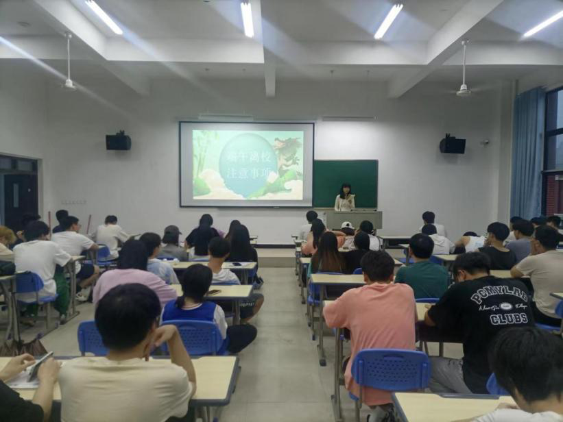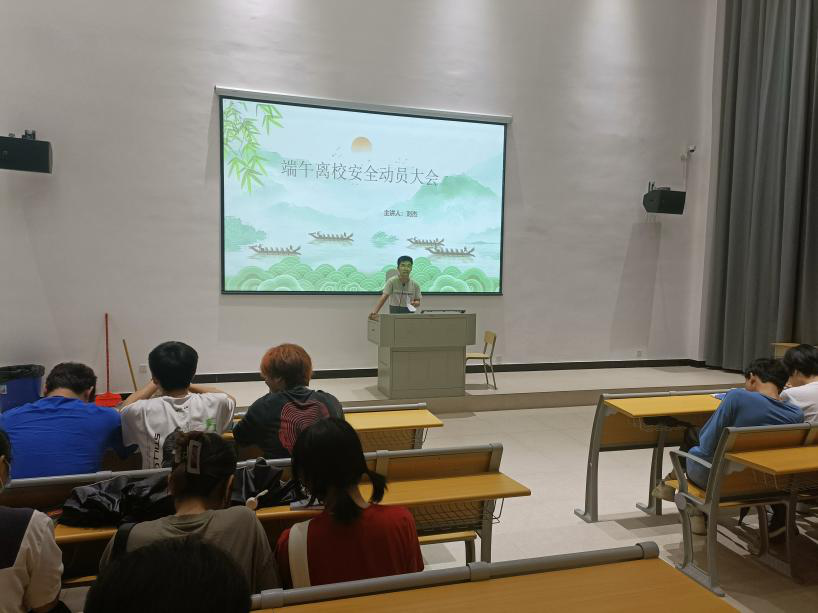 为了让同学们度过一个安康的假期,坚决贯彻落细落实学校疫情防控工作要求,防止疫情输入校园,我系于2022年5月31日在新教学楼401开展了“端午离校注意事项”主题安全动员会。此次主题班会出席人员有辅导员沈嘉煌、林娜、官诗琪、刘杰及全体同学。