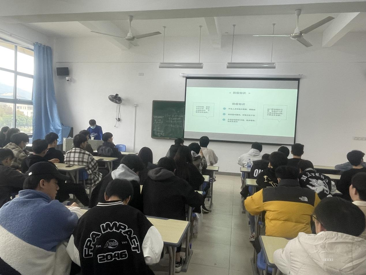 我系于12月11日在5号楼101教室、芝美楼104教室、1号教学楼1202教室分别召开了“接种疫苗,保护自己”的主题班会,出席本次会议的有辅导员刘杰、林娜、官诗琪、熊林盛、罗昭浔、罗旭、潘凤老师以及我系全体同学。