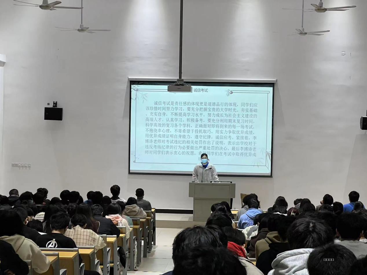 班会过程中,各位辅导员结合考试具体流程,向学生介绍了考试需要注意的事项、携带的工具,以及试卷各部分时间安排等方面的信息,使学生认识到此次考试规划的缜密性,从而使学生意识到采用小手段对待考试是不理智的,进而提高学生学习自主性。让同学们在日常上课时更加积极摄取知识,且形成良好的学习规划,从而做到劳逸结合。了解到“临时抱佛脚”不可取,让学生学会正确对待考试,并通过考试来观察、正视、改进自身学习方法可能存在的问题,使学生们进一步认识和了解“期末诚信考试”的必要性和重要性。