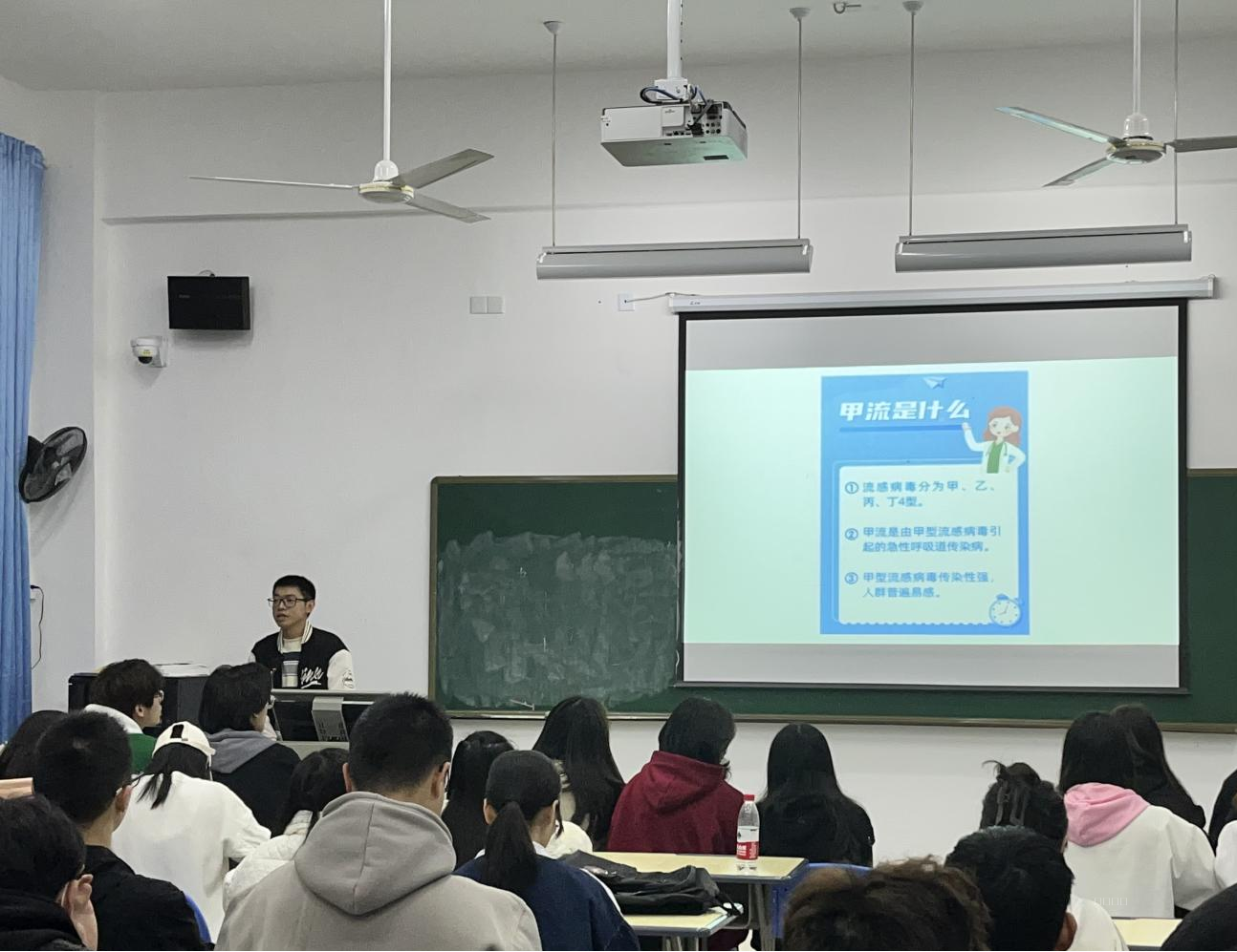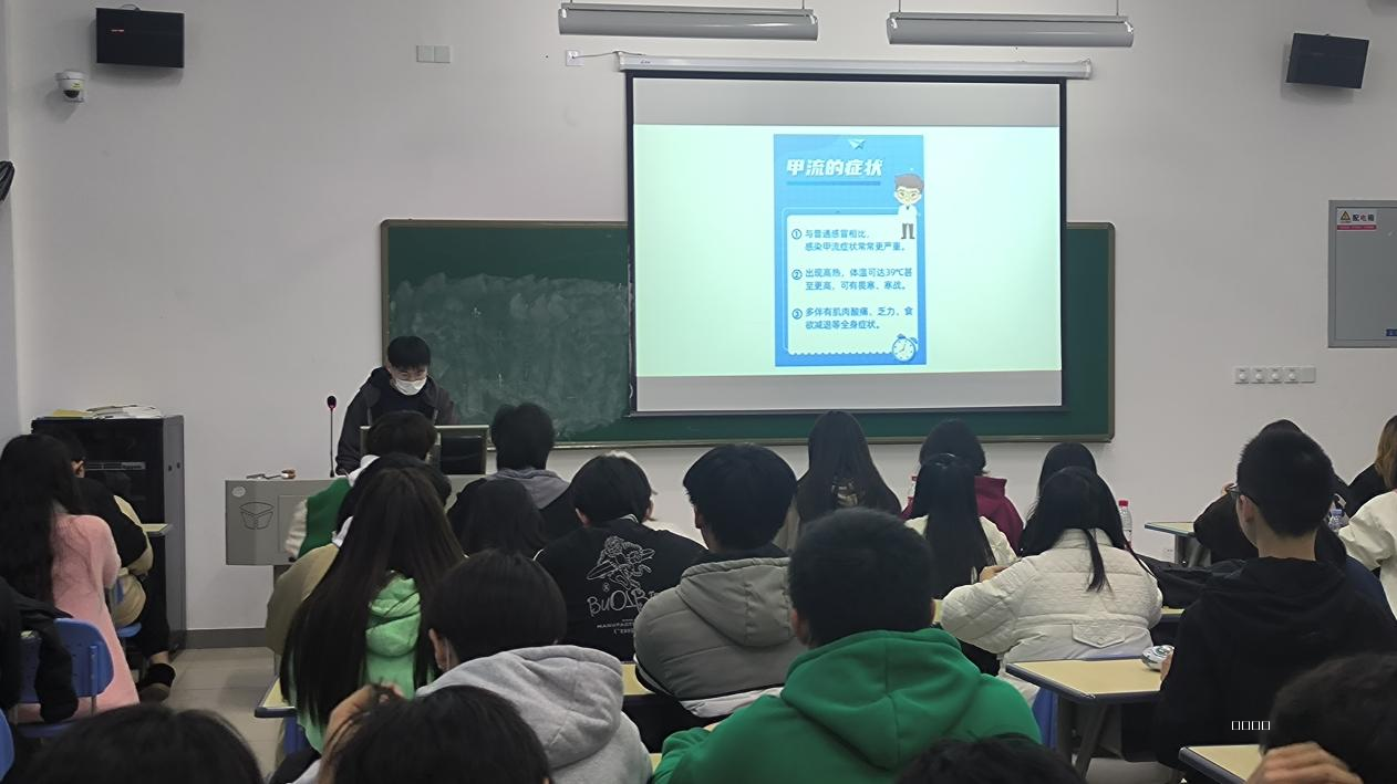 甲流是由甲型流感病毒引起的一种急性呼吸道传染病,甲型流感每年呈季节性流行,易引起大流行。为了让同学们认识甲流,更好地预防甲流,我系于2月27日分别在1号教学楼104、202、305教室开展“科学预防,远离甲流”主题班会,此次主题班会出席的有我系辅导员林娜、王雄、官诗琪、罗昭浔、罗旭、潘凤、熊林盛老师,以及我系全体同学。