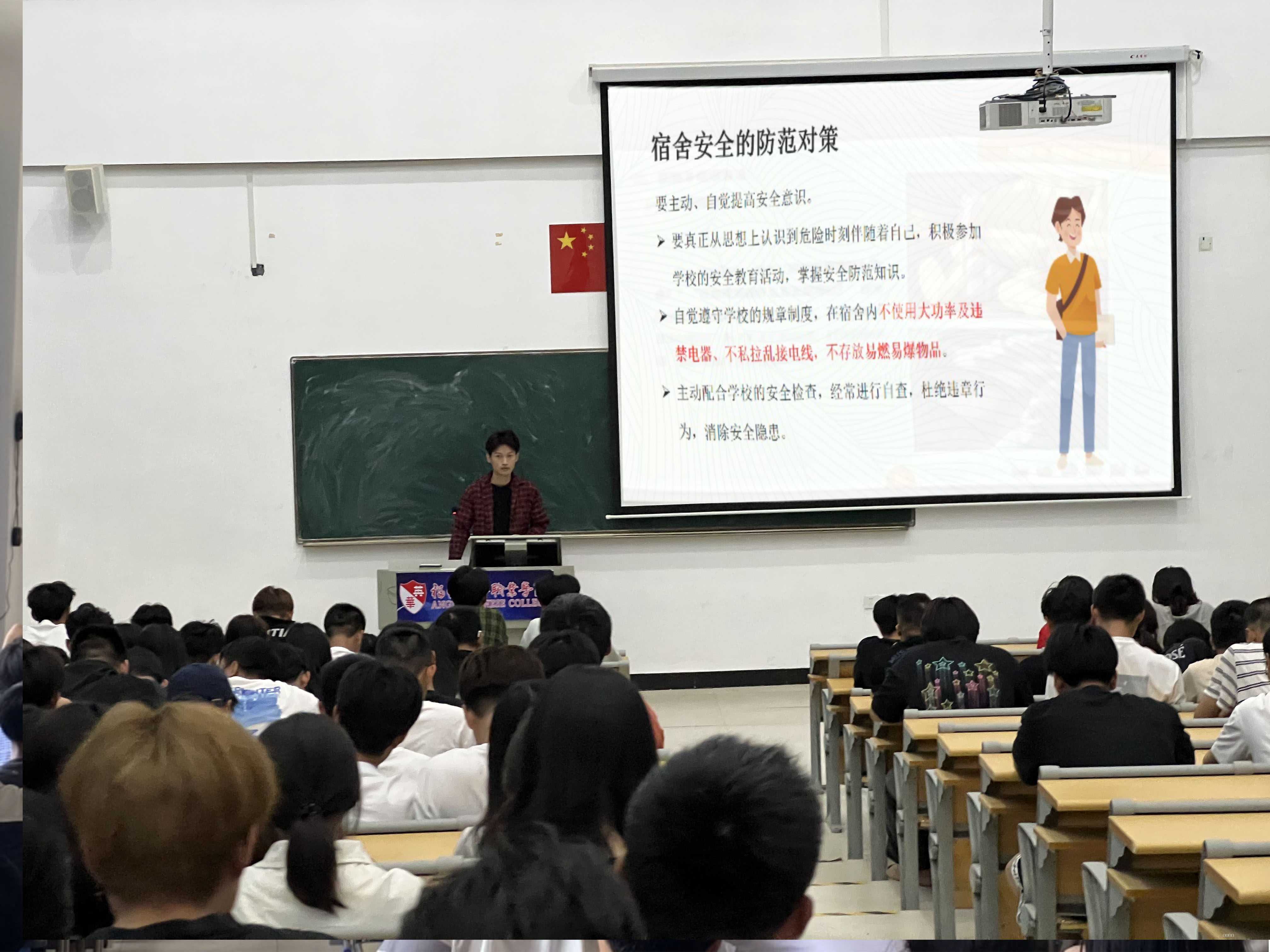 会上,我系辅导员们由个人卫生情况和宿舍整体卫生状况展开,向学生们科普宿舍用电安全的相关知识。并结合图片讲述宿舍安全的案例,让其了解宿舍安全的重要性,告诉学生们爱护个人卫生,维护学校设施,共建良好的生活环境。随后,辅导员们还提出了整改卫生建议,并强调宿舍安全卫生的重要性,要求学生们严格遵守宿舍的相关管理规定,保持良好的生活习惯。