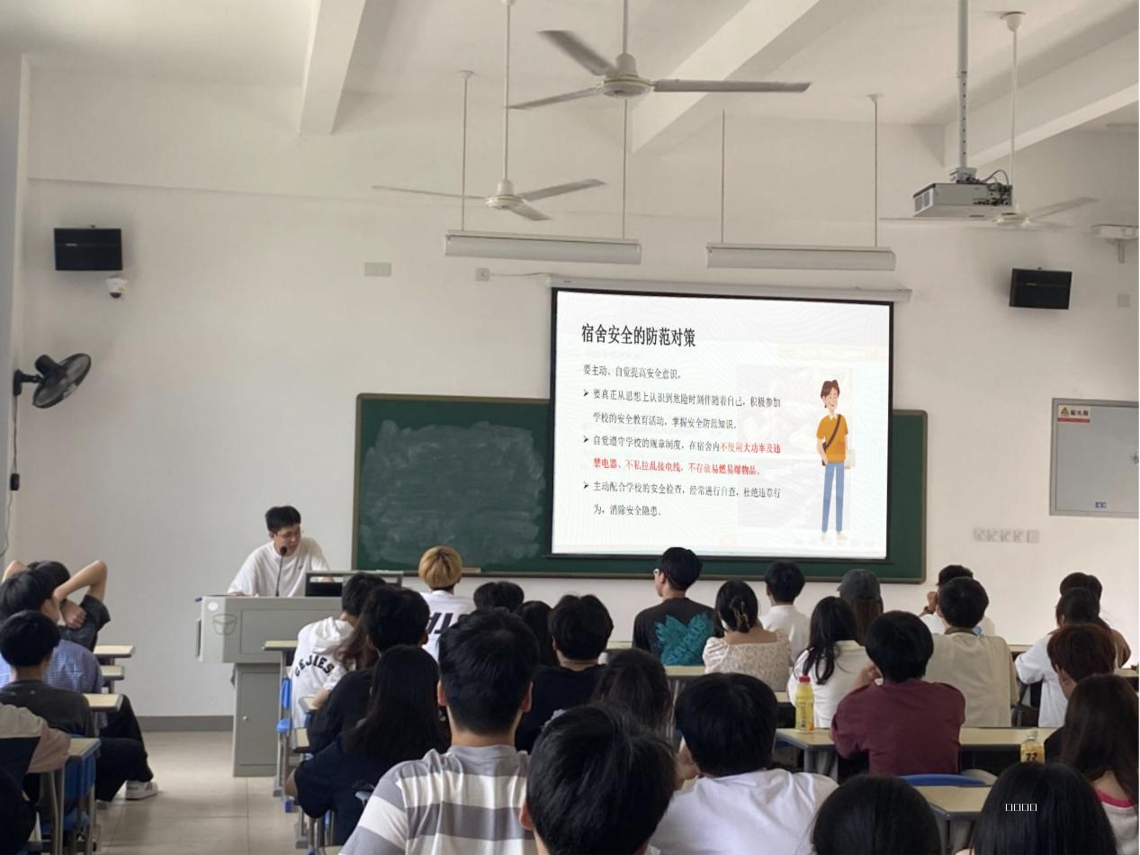 为推动学生整体文明素质和精神风貌的提高,进一步规范学生们的日常行为,加强宿舍教育管理,优化学生宿舍的育人环境,提升学生们自我教育、自我管理、自我监督能力。我系于2023年10月25日开展关于“宿舍安全文明,你我携手同行”的主题大会。本次出席会议的有我系辅导员林娜、官诗琪、罗昭浔、王雄、熊林盛、潘凤、罗旭、潘锐、汪锦洺、宋家书老师以及我系全体学生。本次会议由辅导员们主持。