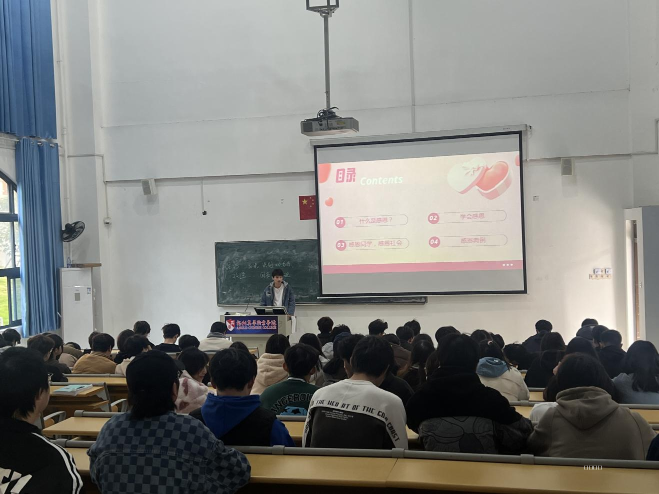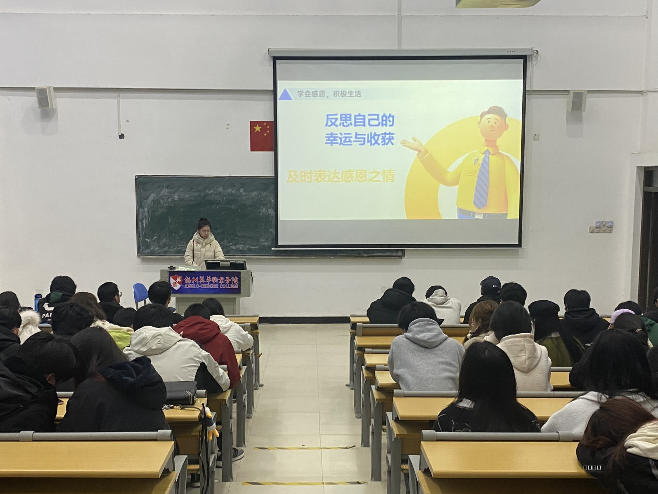 首先,辅导员们以“感恩”为主题,通过相关事例以及提问思考等多种形式,向学生们阐述了感恩的必要性,并告诫学生们:“生而为人,应当怀有一颗感恩的心,珍惜身边的每一位亲友,向需要帮助的人给出鼓励的微笑、贴心的话语或用实际行动支持他们。”随后,在互动环节中,辅导员们为学生们讲解感恩在个人成长道路和维护社会和谐的重要作用和感恩教育对于个人品格塑造和社会和谐建设的重要性。以及如何保持一个积极、健康的态度去面对生活中的挑战和困难,以鼓励学生们通过实践来提升自我价值和社会价值。