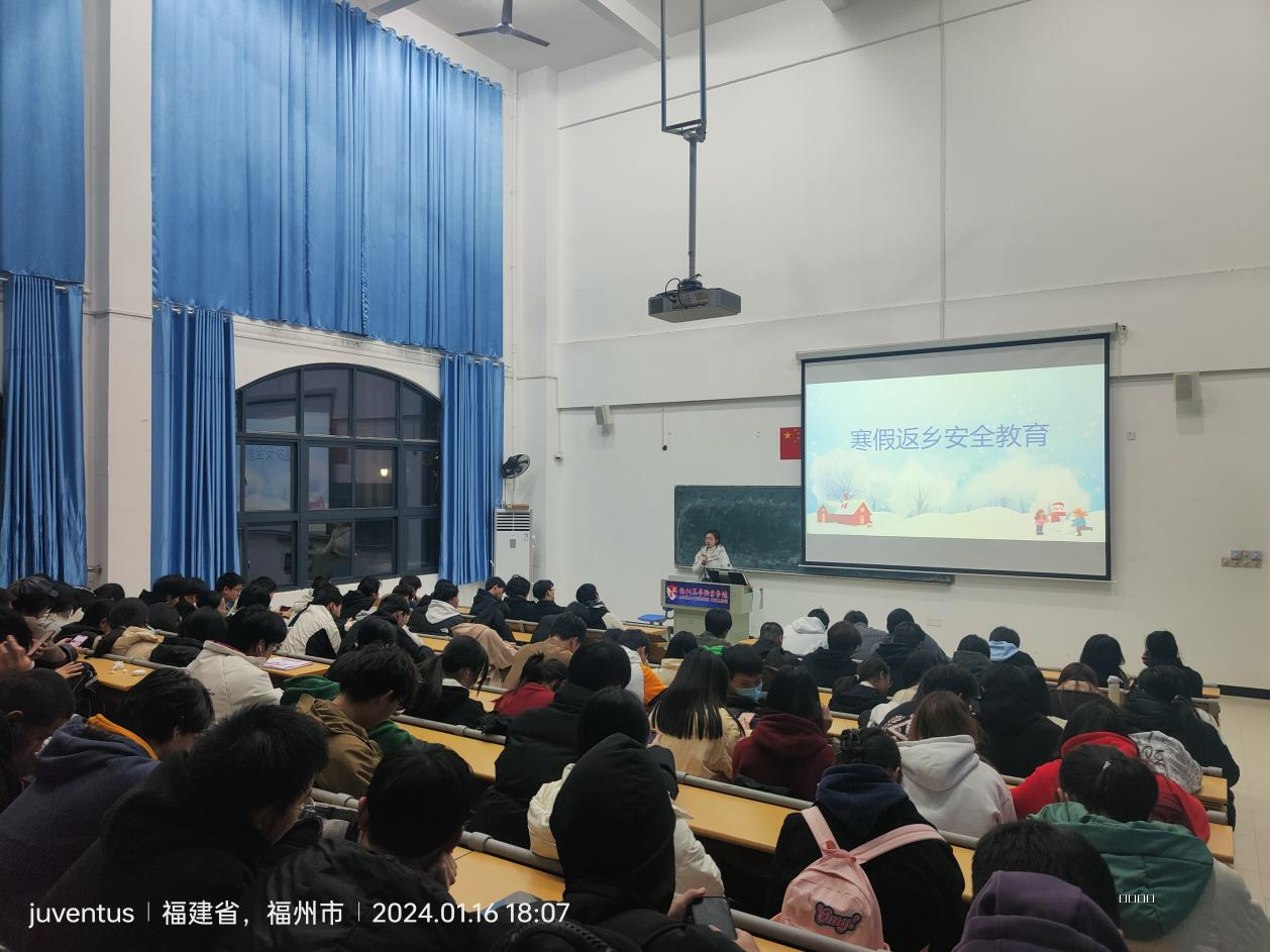 学期即将结束,寒假将至。为了进一步树立同学们安全意识,提高学生自护、自救能力,减少安全事故的发生,确保同学们能够安全、顺利地返回家乡,我系于2024年1月16日开展“寒假返家乡,安全伴我行”主题班会。出席会议的有我系辅导员林娜、官诗琪、罗昭浔、熊林盛、潘凤、罗旭、宋家书、汪锦洺、潘锐、陈胜仪老师以及我系全体学生。本次会议由辅导员们主持。