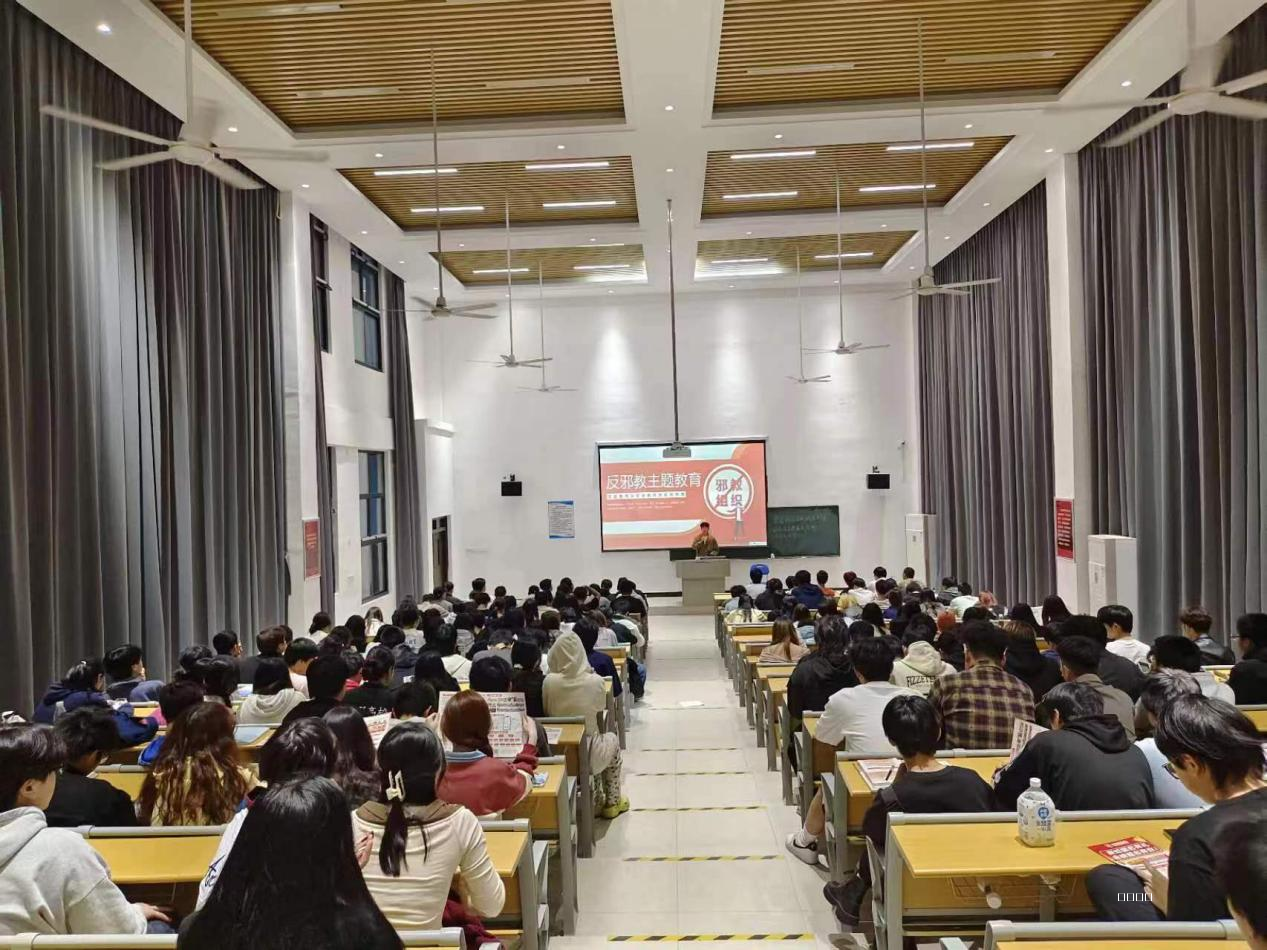 在会上,辅导员们通过图片、视频、宣传片、新闻报道等多种形式,详细的介绍了邪教组织的界定、宗教与邪教的区别、邪教的基本特征、邪教的社会危害、以及邪教常用的骗人手法,并重点分析了要如何反对和抵制邪教,拒绝邪教、拒绝邪教组织的传单、邮件和一切反动宣传活动,拒绝邪教向大家的渗透和侵蚀。同时,呼吁同学们树立正确的人生观和价值观,坚决与伪科学作斗争,面对邪教组织我们保持清醒的头脑崇尚科学、反对邪教。