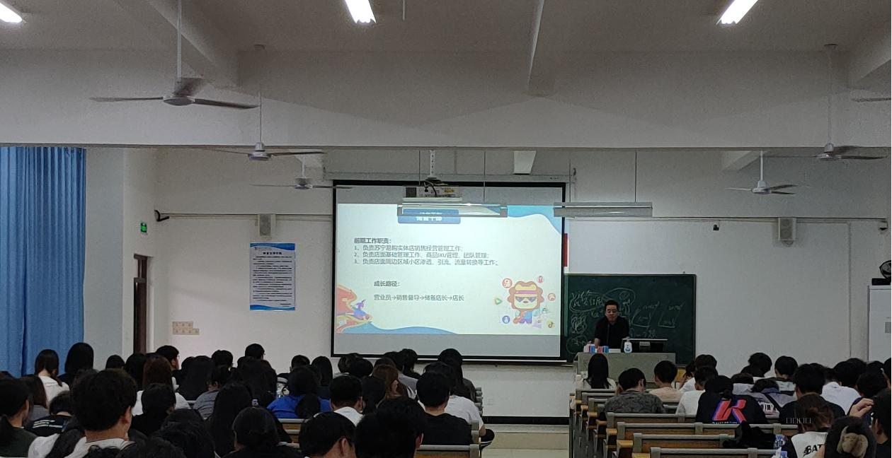 在宣讲会中,贺施楠经理为学生们介绍了福建苏宁易购目前的组织构架、人才成长通道和培养体系、薪资福利、工作待遇等信息。同时,说明了此次福建苏宁易购进校园宣讲的岗位类型和工作内容,也帮助同学们更好地了解相关职业的招聘要求,方便同学们结合自身的情况谨慎进行选择。宣讲会的最后,同学们踊跃发言,对就职流程、发展空间等关乎切身利益的问题进行详细提问,贺施楠经理也对此进行全面而积极的解答。