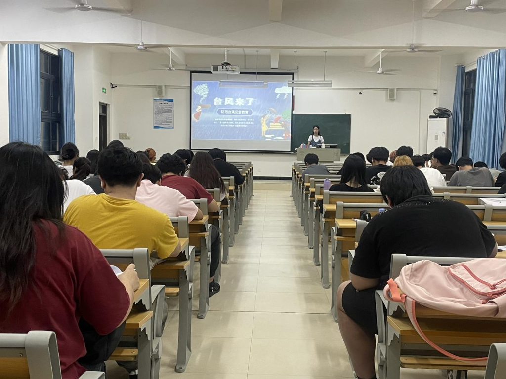 在主题班会中,辅导员们向学生们普及防台风知识,包括台风的基本特征、防范措施、应急避险等方面的内容,并且据气象部门预报,近期将有台风,辅导员们在班会上强调学生们注意人身安全和财产安全,做好防台工作。同时,辅导员们也呼吁学生们,在日常生活中多加了解对台风灾害的认识和应对措施,提高防范意识以及面对自然灾害时的自救能力。