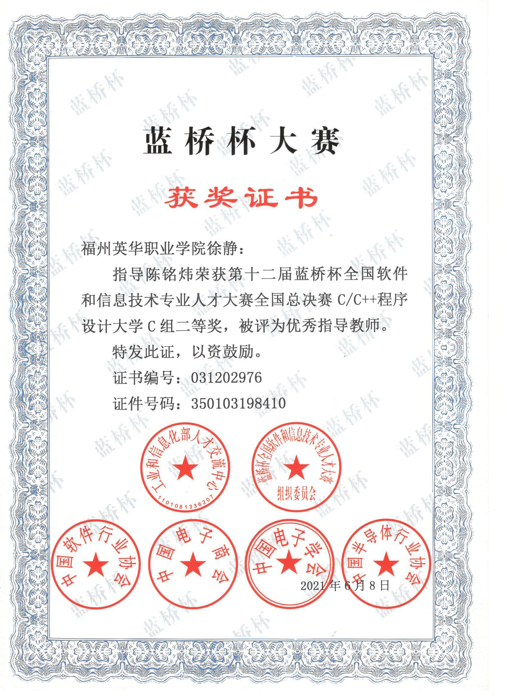 近年来,本专业教师带领学生参与了多次职业技能竞赛,并获得了福建省高职院校职业技能比赛动漫制作项目一等奖、软件测试项目三等奖、平面设计项目三等奖、移动应用开发项目三等奖等奖项;第十一届和第十二届蓝桥杯全国软件和信息技术专业人才大赛C/C++程序设计项目全国二等奖和福建省一等奖;福建省大学生人工智能行业分析与实践大赛福建省二等奖和三等奖;第三届全国大学生互联网+创新大赛(暨第三届“发现杯”全国大学生互联网软件设计大奖赛)高职组APP开发与设计项目三等奖等奖项。