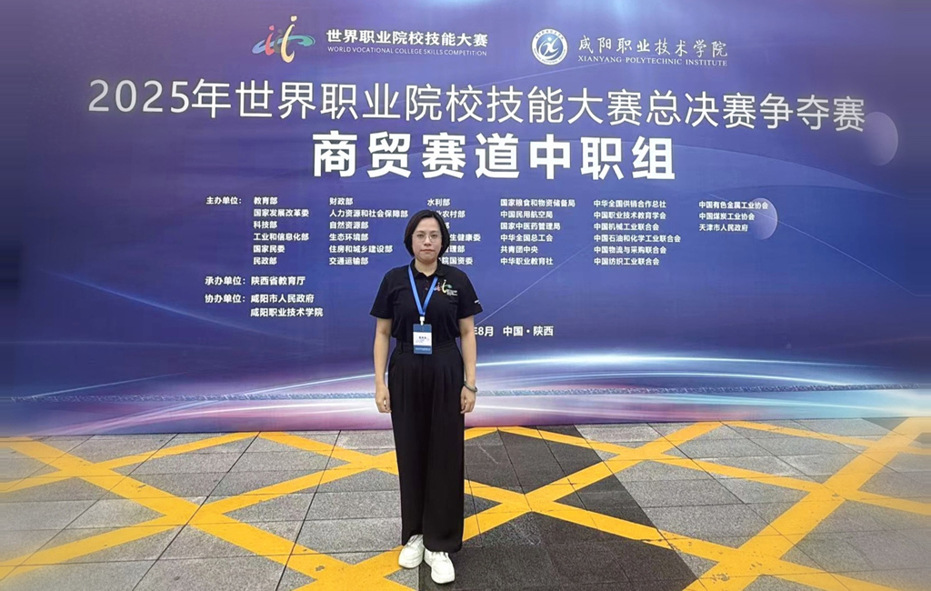 我院经济管理系主任郑琳教授受邀担任2025年世界职业院校技能大赛总决赛争夺赛商贸赛道的裁判工作。此次受邀充分彰显了我院教师在专业领域的权威性与影响力,是我院持续深化师资队伍建设、着力打造高水平“双师型”教师团队的又一显著成果。这不仅进一步提升了我院在全国职业教育领域的知名度和美誉度,也为我院带来了先进的赛事标准和宝贵的职业教育经验。