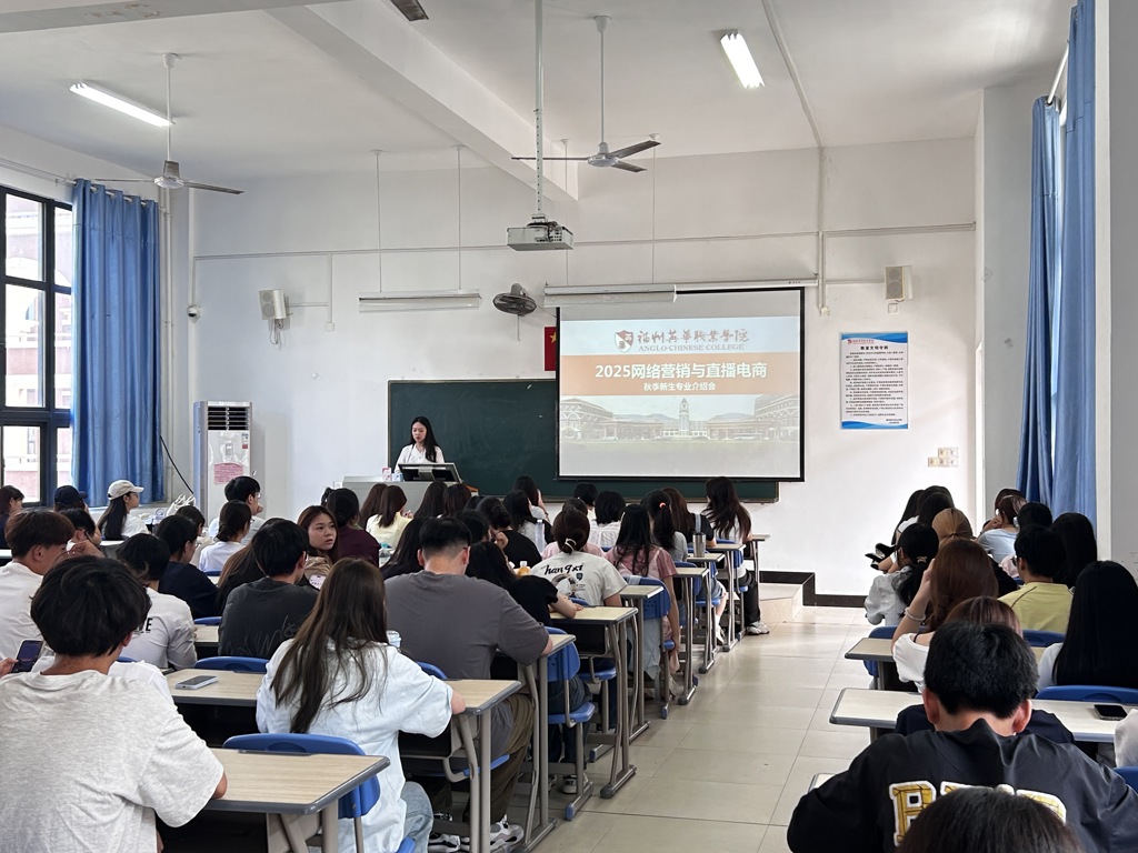 大数据与会计、电子商务、跨境电子商务、金融服务与管理、市场营销、网络营销与直播电商、会展策划与管理、供应链运营的专业带头人或负责人,分别从专业发展历程、师资队伍、培养目标、课程体系、教学特色、实践教学平台、就业前景与发展方向等方面进行了系统介绍。他们通过生动的案例、详实的数据和深入浅出的讲解,不仅解答了新生们“学什么”“怎么学”的疑惑,更描绘了“为何学”“未来做什么”的职业蓝图,极大增强了新生们的专业认同感和学习使命感。