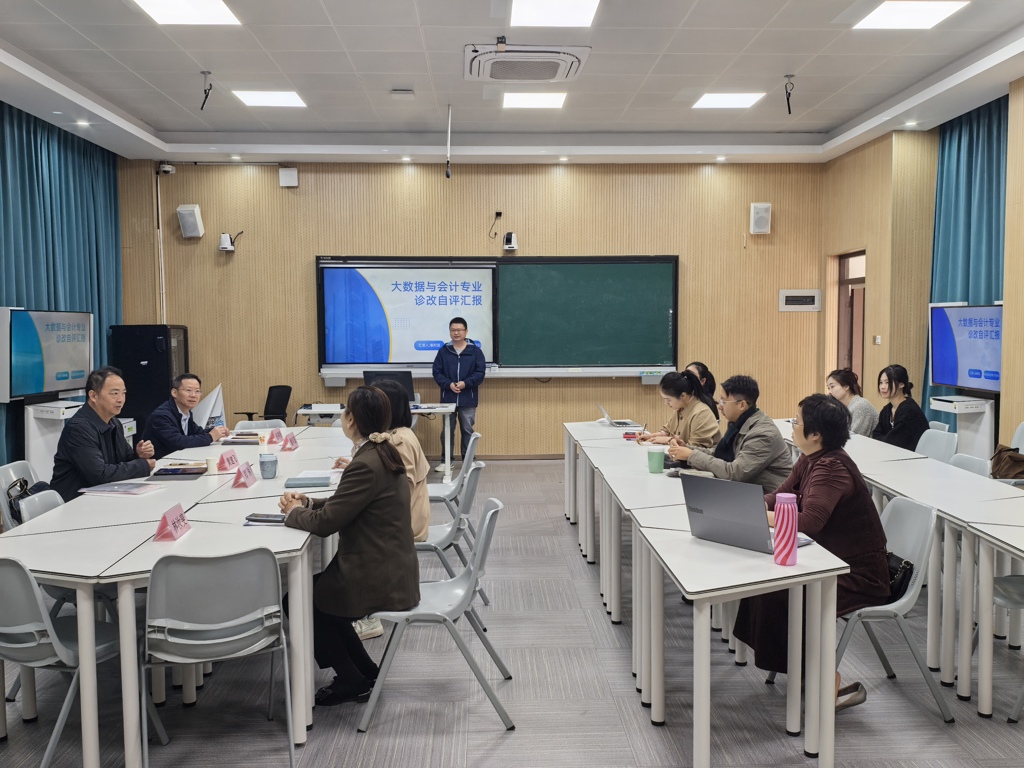 评估工作严格遵循“客观公正、注重实效、以评促建、以评促改”的原则,通过听取汇报、查阅资料、实地考察、师生座谈等多种形式全面展开。会上,大数据与会计专业带头人潘邦国从专业定位、课程体系、师资队伍、实践教学、人才培养质量、社会服务等方面作详细汇报,系统梳理了专业自设立以来在对接行业需求、融合大数据技术、深化产教融合等方面的建设成果,同时客观分析了当前存在的问题与改进方向。