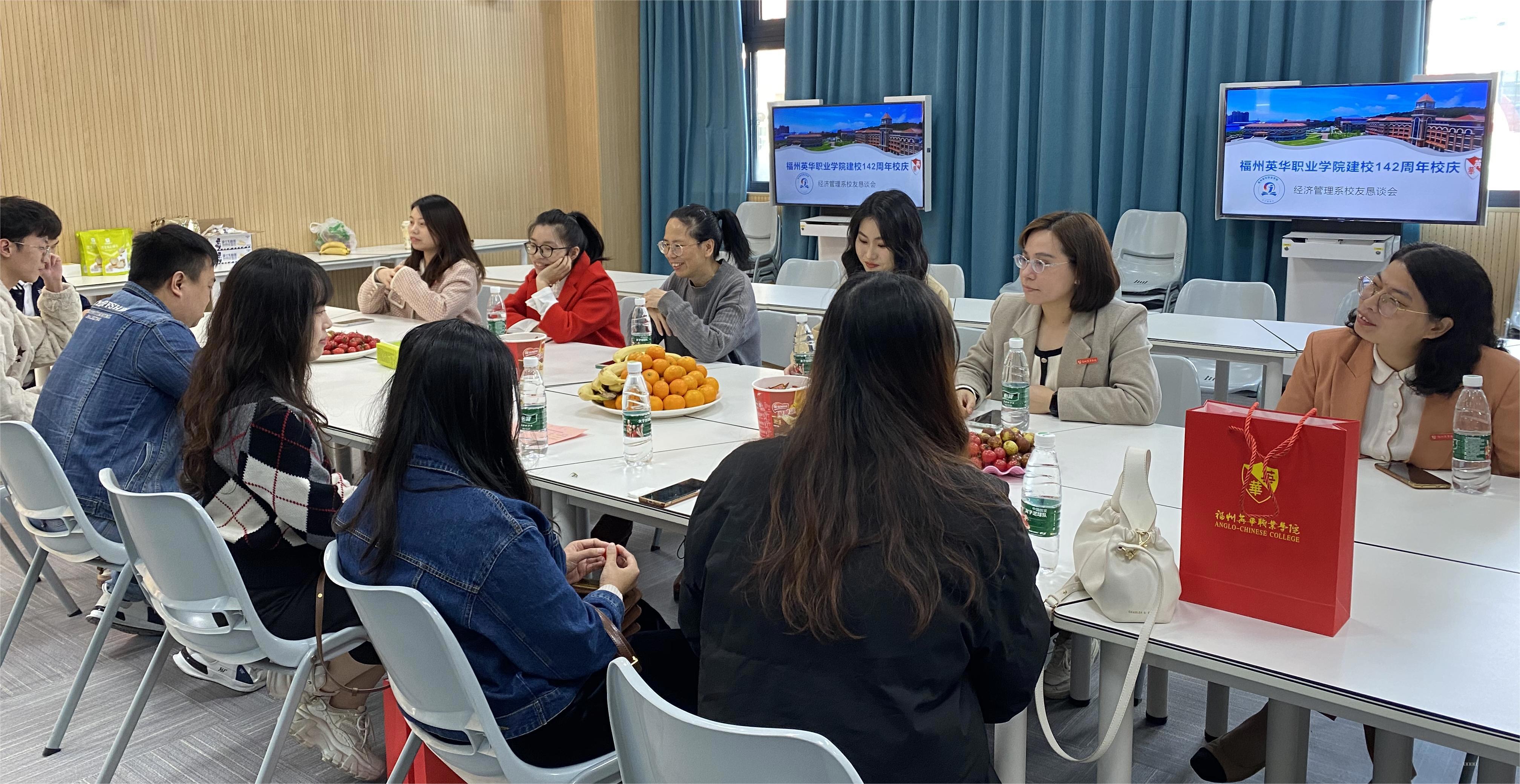 郑琳主任在致辞中表达了对各位校友参加福州英华职业学院建校142周年活动的感谢,同时,对学校风雨兼程迎来建校142周年表示热烈祝贺。各位校友围绕庆祝建校142周年、经管系的建设发展、校园环境的新变化、师生友情、事业生活等表达了所思所感,追忆往日情怀,畅叙师生深情,重温同窗友谊,共同分享成功的喜悦和快乐!校友们也结合自身情况,围绕毕业生就业选择、创新发展、新专业开设、课程建设等多方面展开交流,为系部下一步发展献言献策。