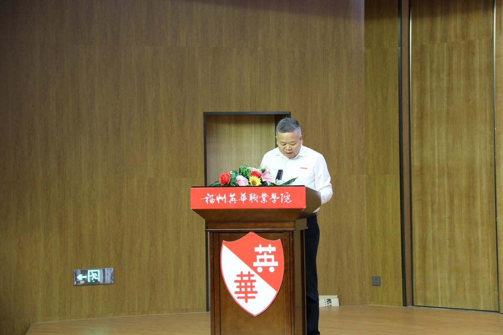 优秀毕业生家长代表肖凤琴发言。他表示,感恩学院领导、各位老师三年来对孩子们的关爱和培养,使孩子们在英华能够快乐地学习,健康地生活,度过短暂而难忘的大学生活。