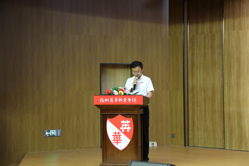 优秀校友许程凯发言。他表示学弟学妹们应当坚守初心,无论身处顺境逆境,都要心怀感恩,昂扬向上,做一名对国家有贡献、对社会有价值、对家庭有责任、对师长有感恩的英华人。