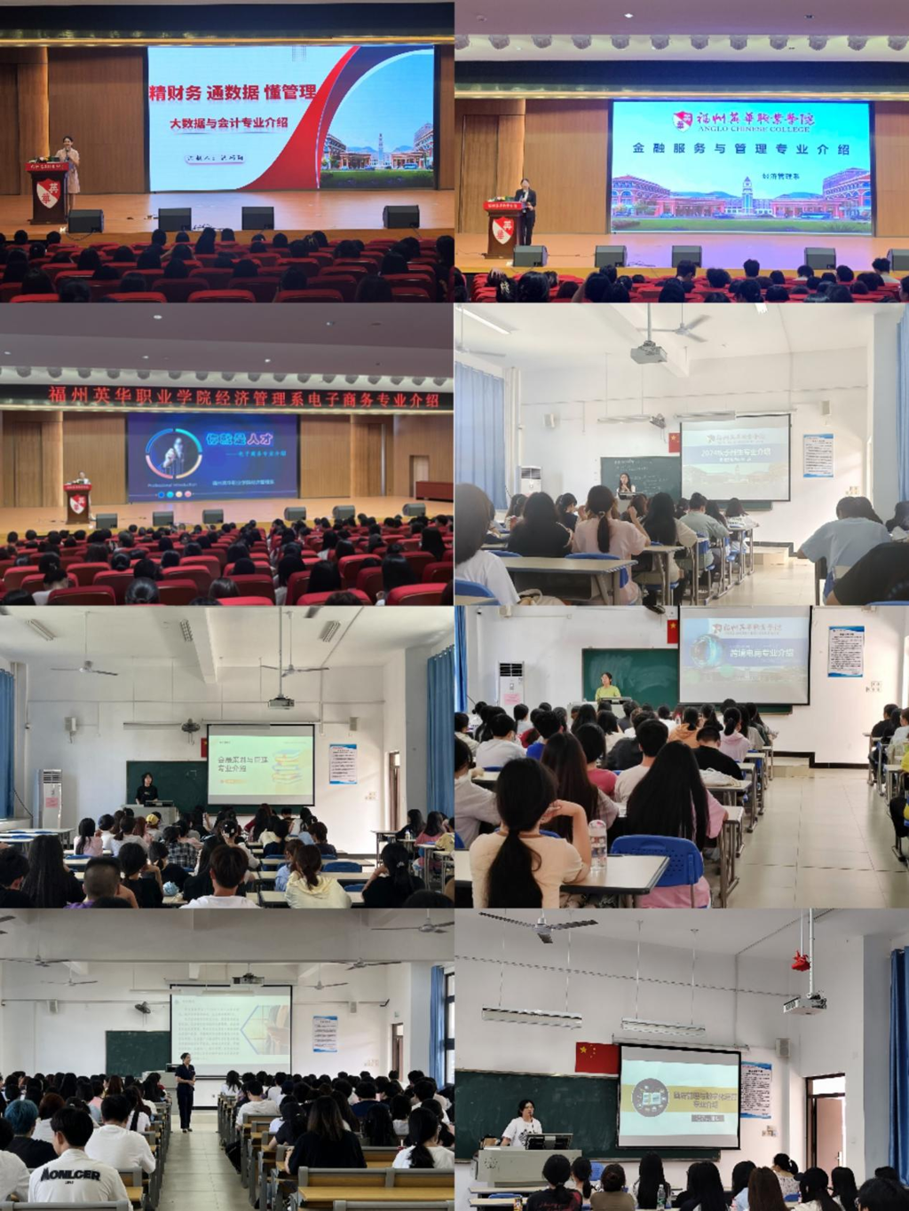 大数据与会计、金融服务与管理、电子商务、网络营销与直播电商、会展策划与管理、跨境电子商务、市场营销、酒店管理与数字化运营的专业带头人分别从专业概况、行业动态、课程设置、就业发展以及职业规划等多个方面进行了深入细致的讲解,并围绕着职业技能大赛、专升本、就业前景等问题积极与学生互动,鼓励同学们提前规划三年的专业学习,在学习道路上追求卓越,勇攀高峰。