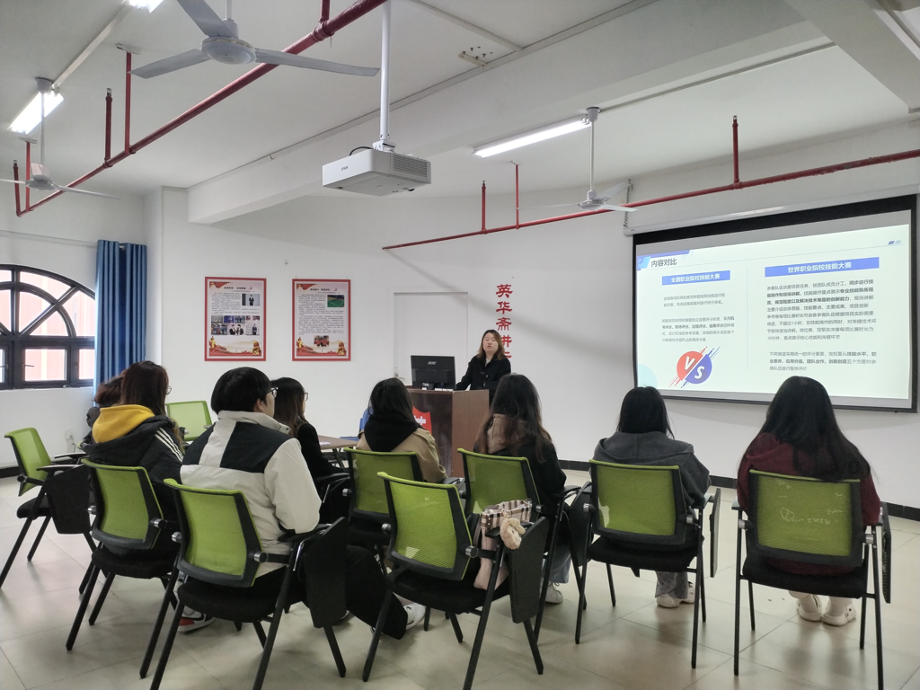 随后,她详细分析了世界职业院校技能大赛的机制,内容涵盖赛项详细说明、经典赛事复盘、解题思路拆解以及实际案例分享等。通过对比全国职业院校技能大赛与世界职业院校技能大赛的差异,让学生们了解到大赛的发展趋势和对参赛选手能力的要求。