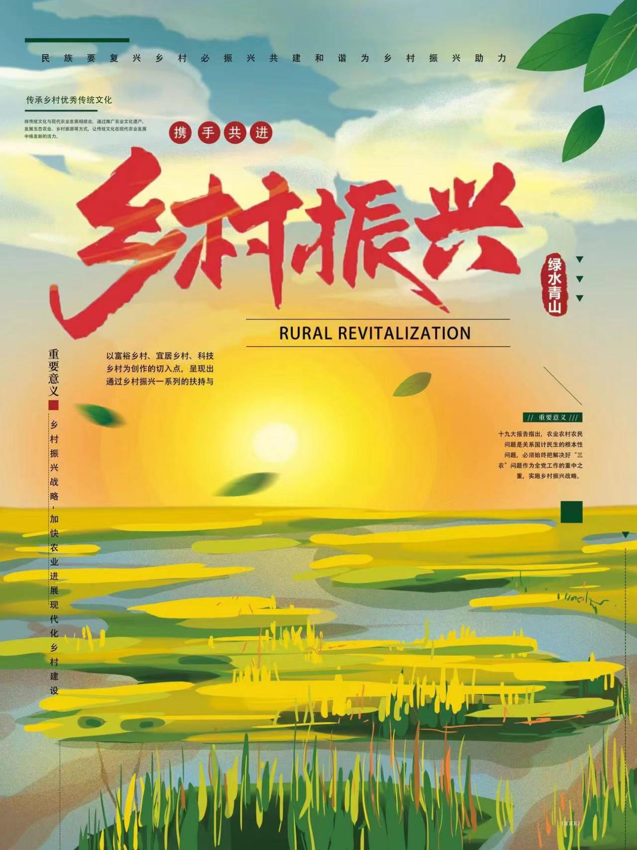 为提高经济管理系同学们的专业设计能力,打造良好的专业学习氛围,经济管理系团总支于3月13日举办PS海报设计大赛。本次大赛以“凝心聚力绘就乡村振兴美丽画卷”作为主题进行创作,由经济管理系团总支书记叶鑫担任此次评委。共有11位参赛选手参加本次比赛,在比赛中,同学们充分发挥了自己的专业能力和想象力,将个人对主题的想法呈现在图片上,同时通过语言向大家介绍作品画的制作过程,这种形式不仅能够展现学生们的专业技术知识,也锻炼了学生们表达能力,创造了很多精彩作品。采取了多维度考评标准,从原创度、内容表达、技术运用、形式美感、合法合规一共5项标准来进行综合评定。经过专业老师的评审后,本次比赛共产生了三名获奖者,分别是第一名:黄美家 第二名:简政 第三名:徐怡心,一起来看看他们的优秀作品吧!