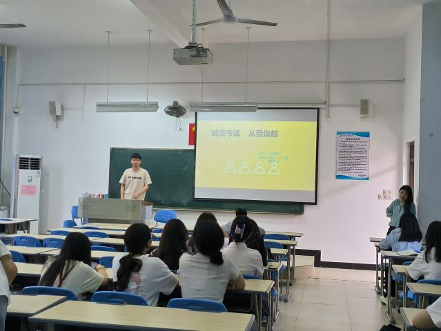 为进一步弘扬诚信精神,强化学生的考试纪律和道德观念,为即将到来的期末考试营造公平、公正、诚信的考试环境,特此,经济管理系于2024年6月12日晚,在芝美楼304组织开展“文明考风,诚信考试”主题班会,本次班会由经济管理系辅导员主持,经济管理系全体学生参加。