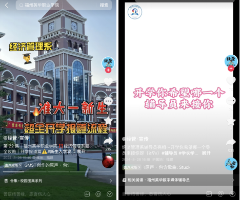 为了帮助新生们更好地了解大学生活,我院经济管理系抖音号“经管·宣传”开展迎新特辑宣传,其中包括新生报道流程、新生辅导员及助导介绍、校园环境介绍等内容,帮助新生们更好地了解学院和大学生活。同时开启直播逛校园,带领新生们探索校园的各个角落,为新生们答疑解惑,有效地解答了新生们的疑虑与担忧。