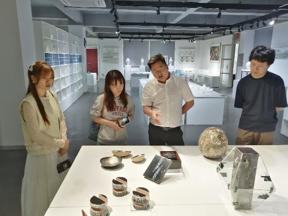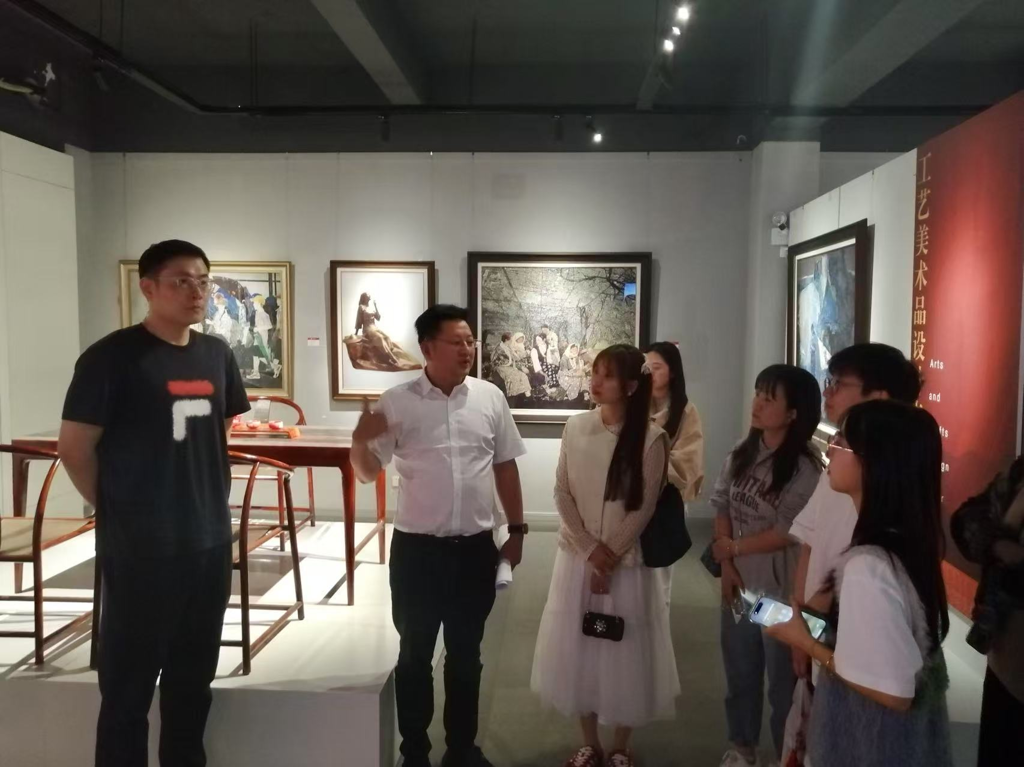 在福建艺术职业学院艺术设计学院院长周帆扬及专业教师的陪同下,参访团队走进该校艺术设计展厅,集中观摩了优秀专业教师的代表作品及往届毕业生设计作品。展厅内陈列了环境艺术专业的空间设计模型、艺术设计专业的品牌视觉项目、漆器与陶艺专业的传统工艺创新作品,以及产品艺术设计专业的功能性创意产品等百余件展品,全面展现了“传统工艺与现代技术融合”“艺术赋能产业”的教学特色。