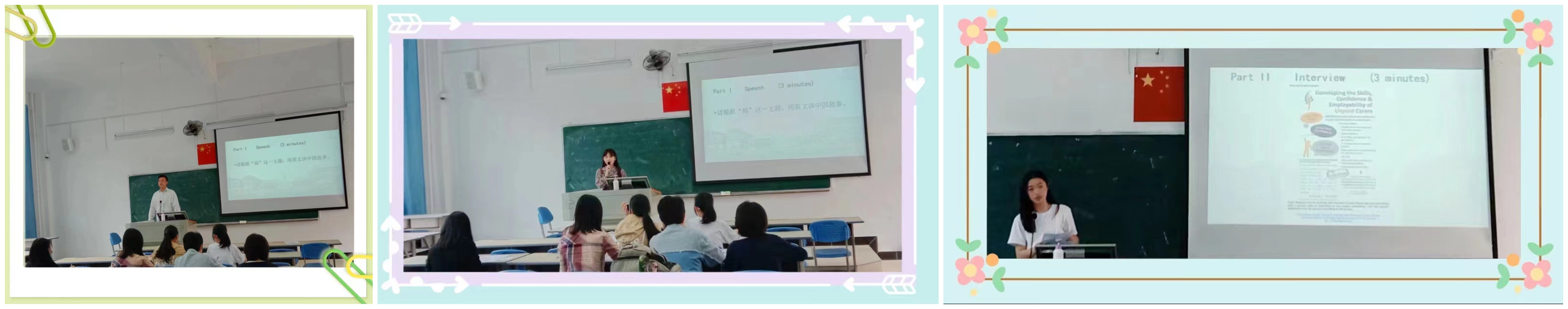 2022年5月11日上午10时,由教育与外语系英语教研室举办的第八届英语口语技能大赛(专业组)在教学楼芝美楼203拉开帷幕。来自教外系的胡冬菊老师、王晶老师,以及黄珊老师担任本次大赛的评委。